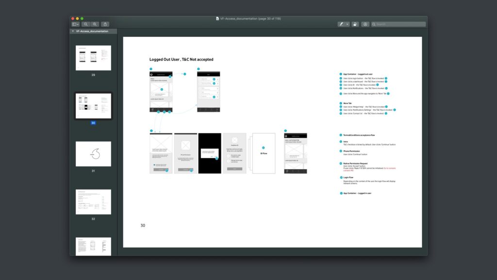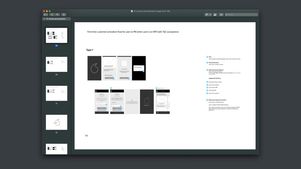 In an Agile context minimum documentation is paramount. However, comprehensive documentation was created to support handover to Vodafone’s design team and communication with stakeholders